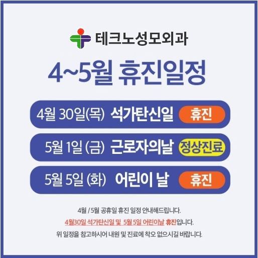 홈커뮤니티공지사항 공지사항 4월 ~ 5월 휴진 안내 작성자 관리자 작성일 2020-04-28 03:02 조회 1473 [테크노 성모외과] 휴진안내 드립니다. 5월 1일 금요일 5월 2일 토요일5월 4일 월요일정상진료 합니다.내원 시 참고 부탁드립니다. 감사합니다. 좋아요 0 싫어요 0 인쇄 « 21대 국회의원선거 진료휴진 안내 테크노성모외과비급여상세내역입니다 » 목록보기 답글쓰기 Powered by KBoard